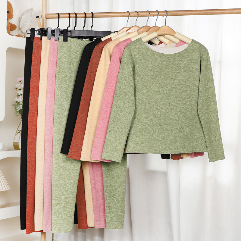 β¨ Crafted with cashmere-silk touch thermal fabric, the round-neck long-sleeve top and matching pants provide excellent insulation while remaining lightweight and breathable. The body-hugging design keeps heat locked in without feeling bulky, making it ideal for layering under winter clothes or wearing indoors.