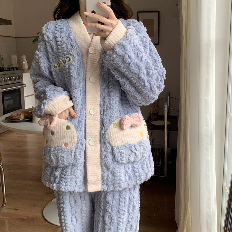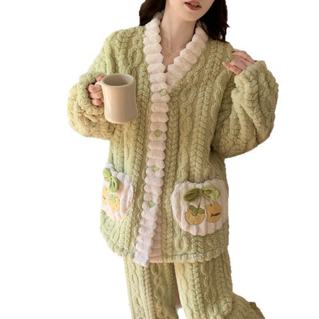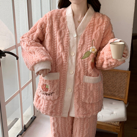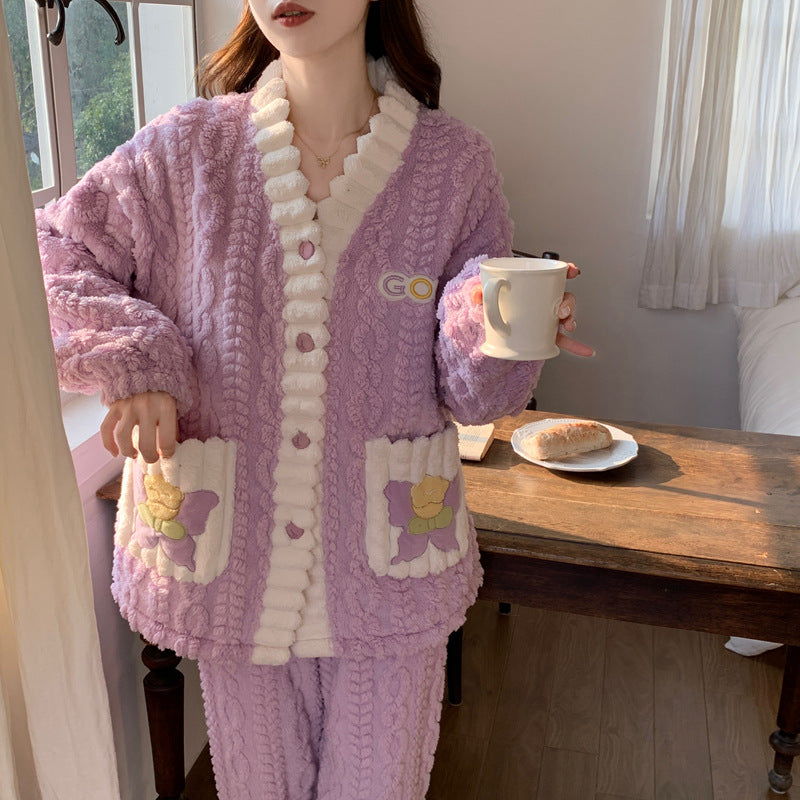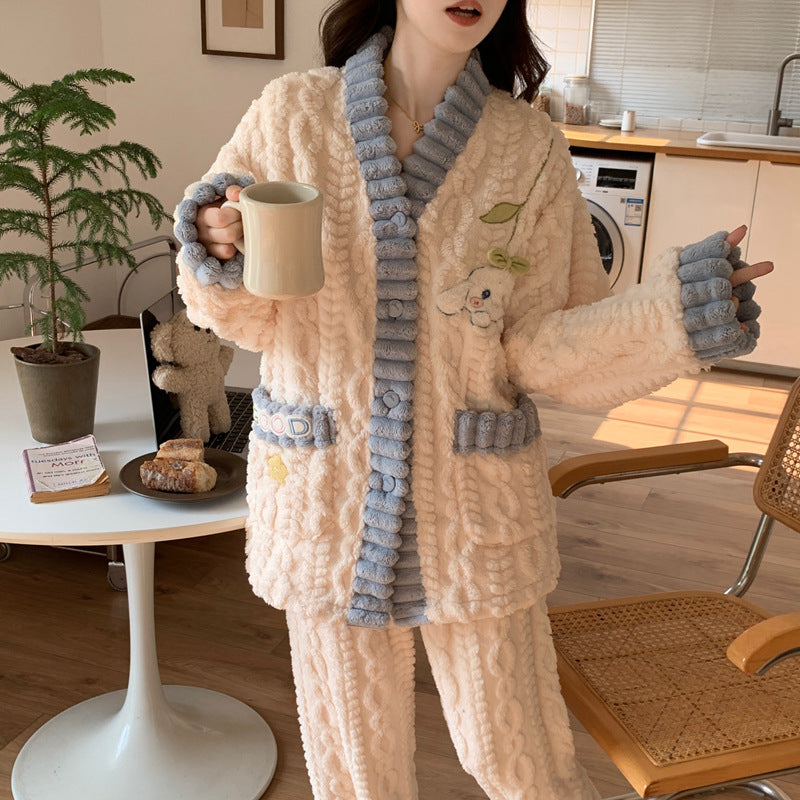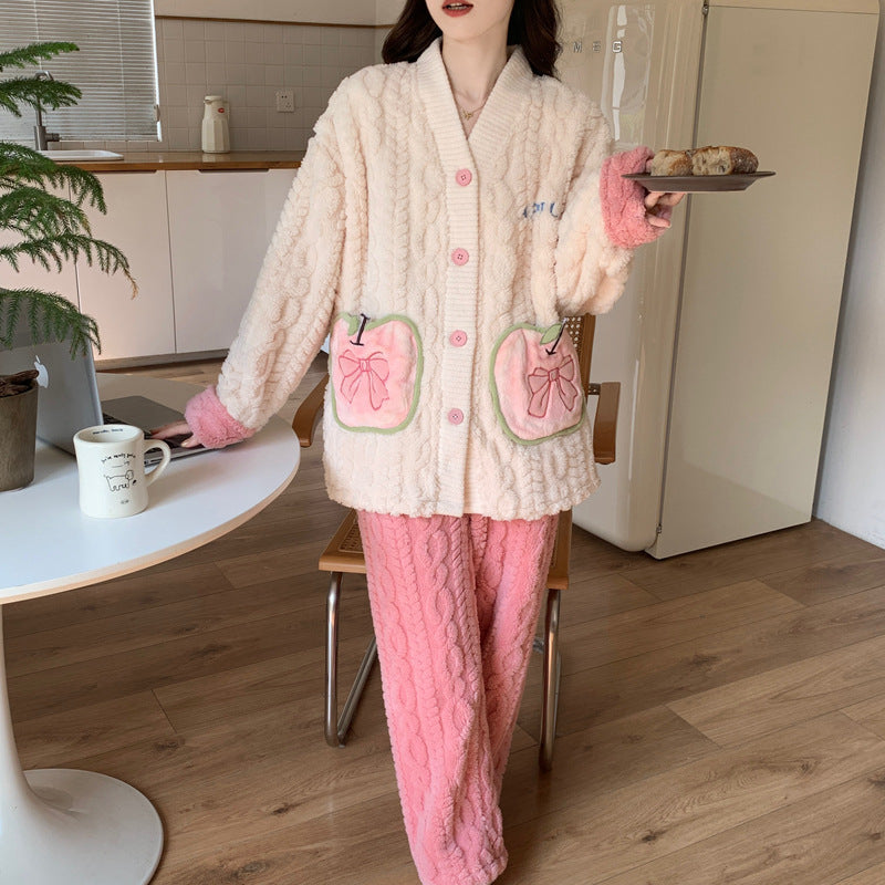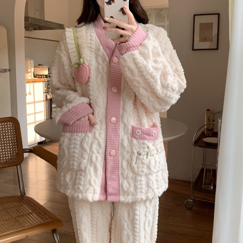 Women’s Coral Fleece Pajamas 2026 Autumn Winter Warm Home Wear