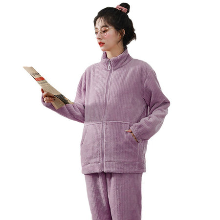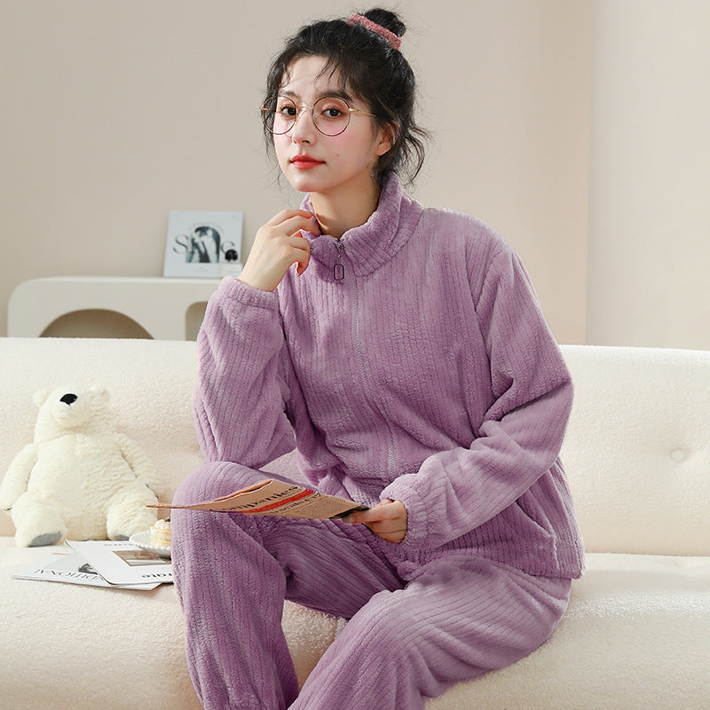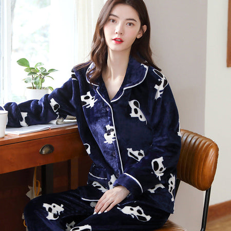 Women’s Coral Fleece Pajamas Autumn Winter Warm Fashion Set