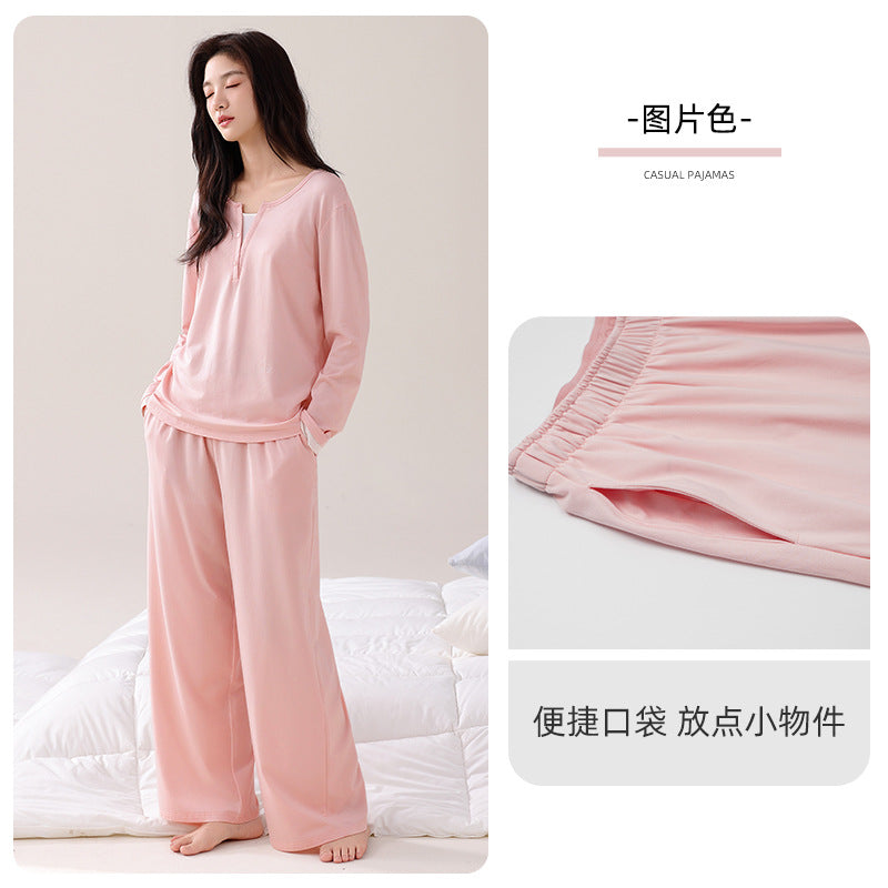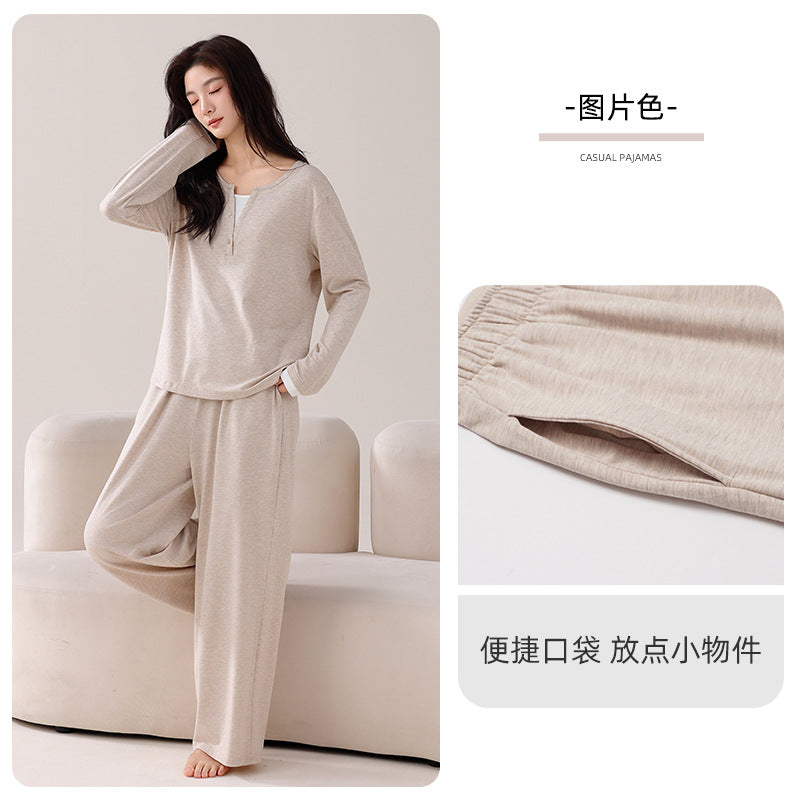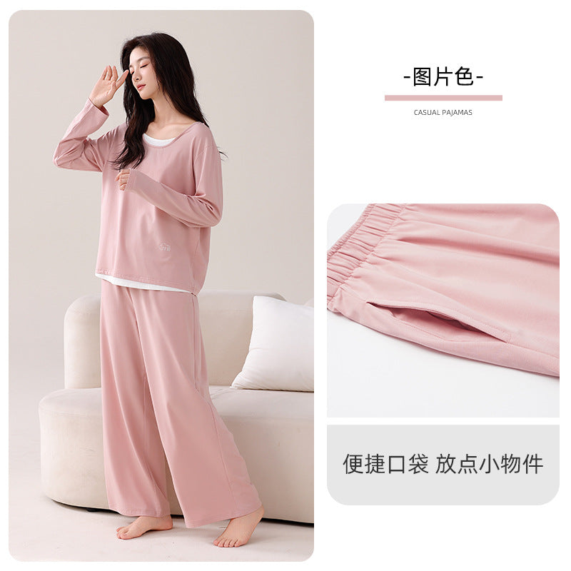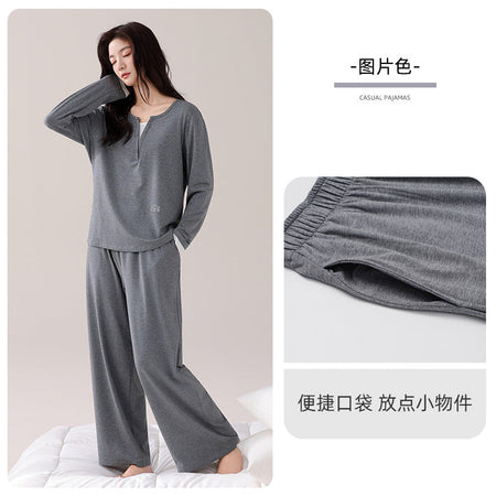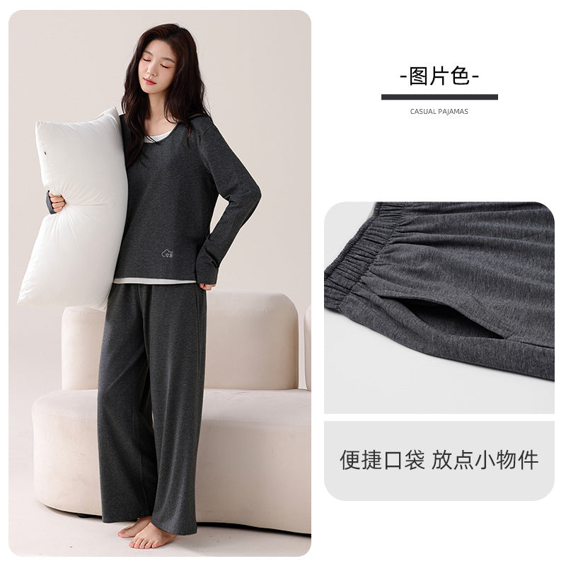 Women value pajamas that combine comfort, practicality, and style. This 2025 modal pajama set with breast pads offers a thoughtful solution with a soft long-sleeved design, casual fake two-piece look, and easy pullover wear. Suitable for spring and autumn, it provides a comfortable, supportive, and stylish option for women seeking everyday home wear that feels effortless and refined.