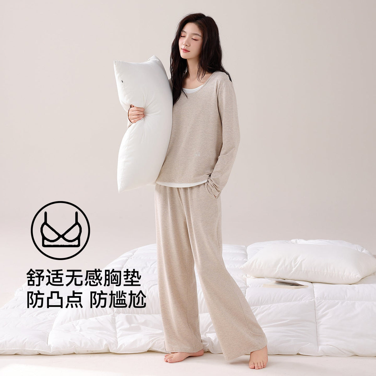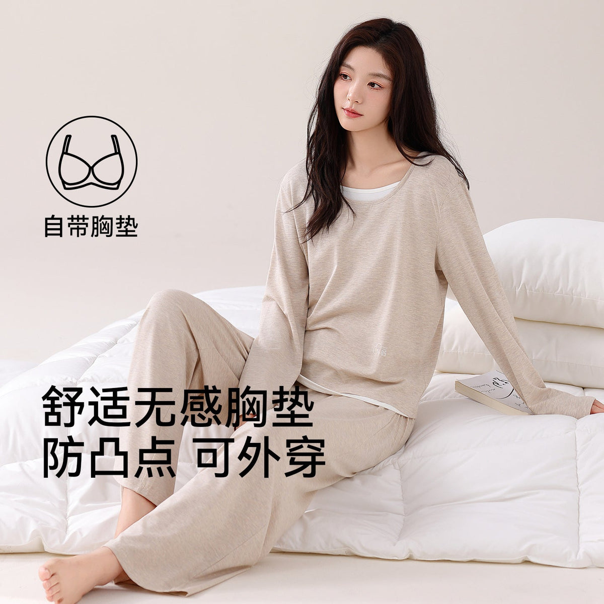 Women’s Modal Pajamas with Breast Pads Spring Autumn Two-Piece