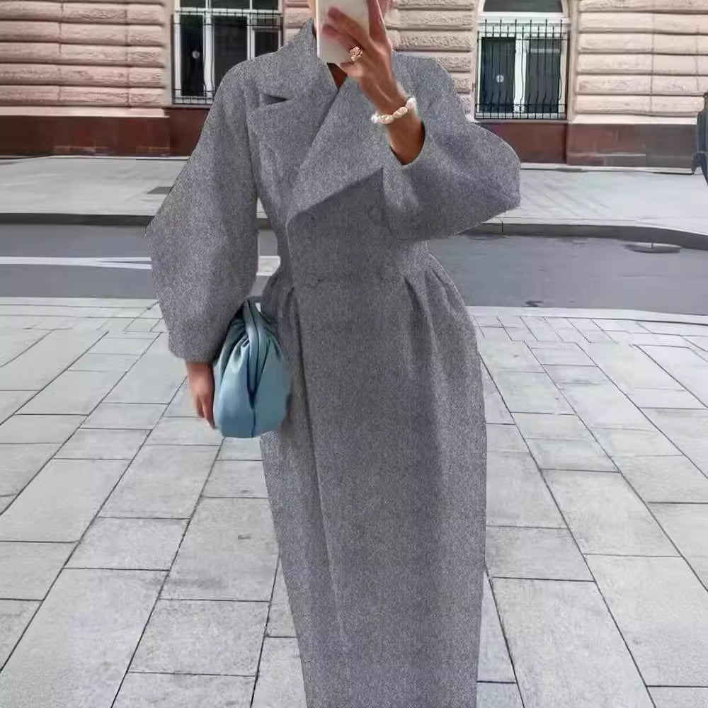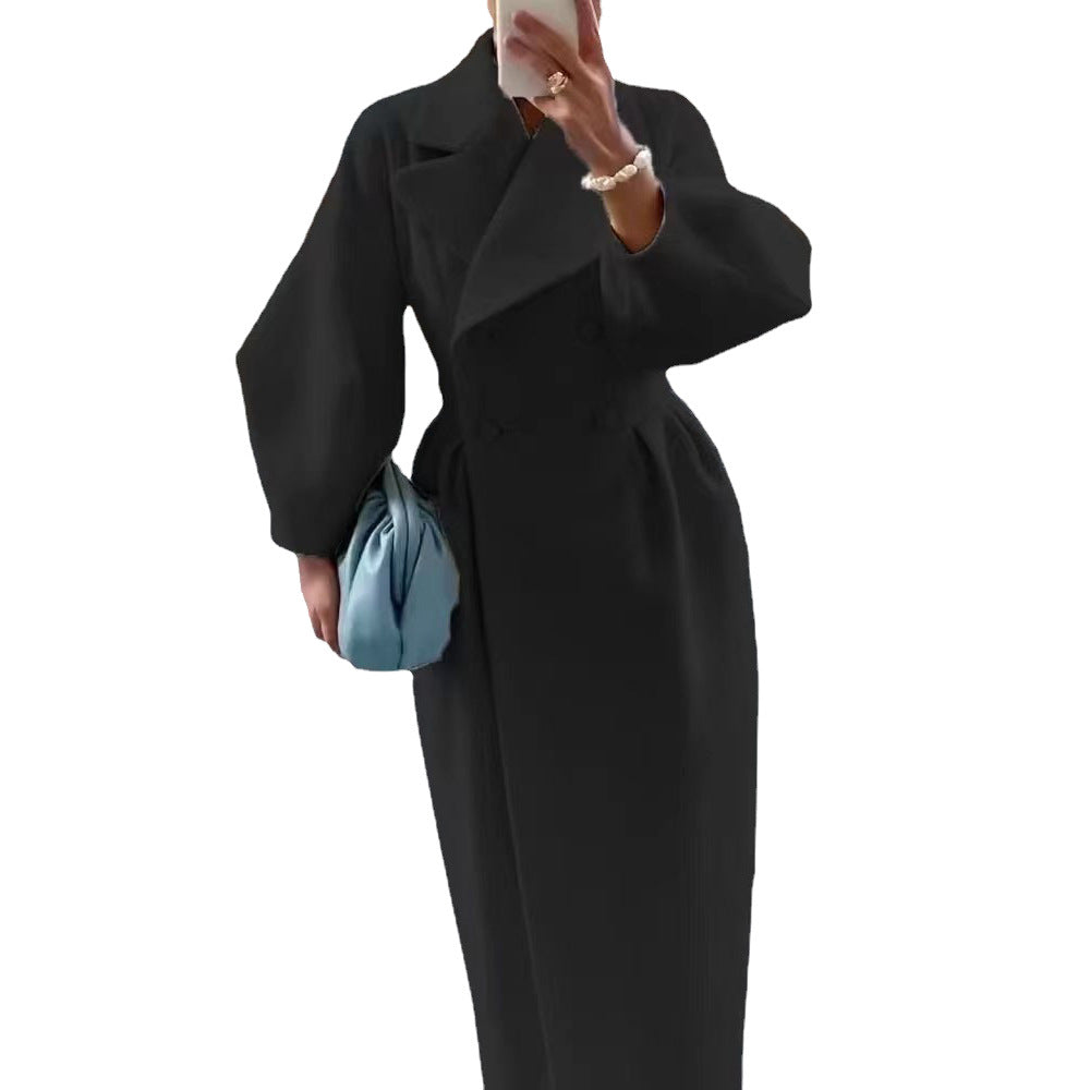 Women’s Retro Lantern Sleeve Woolen Long Coat 2026