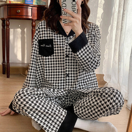 This home wear set is suitable for girls who enjoy minimalist fashion with a trendy edge. The cardigan-style top pairs effortlessly with the matching bottoms, creating a coordinated look that feels modern and effortless. ✨