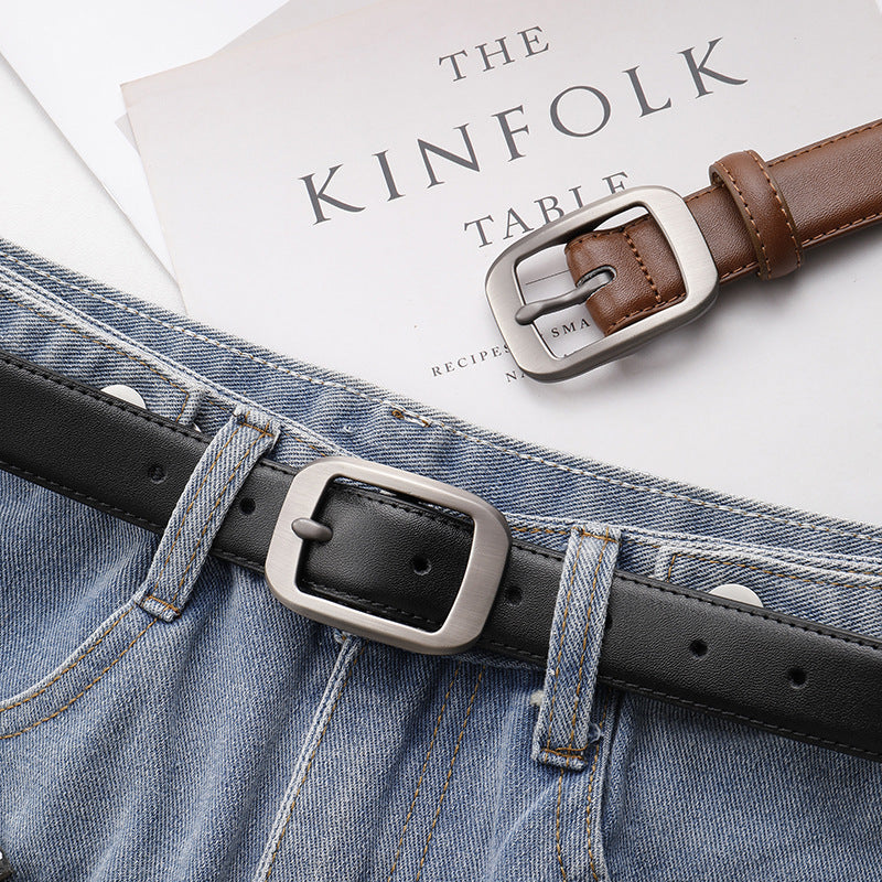 Durable Women’s Leather Belt with Alloy Pin Buckle
