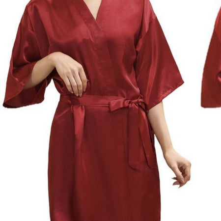 Silky Kimono Bathrobe โ Sexy Short Gown for Summer Nights