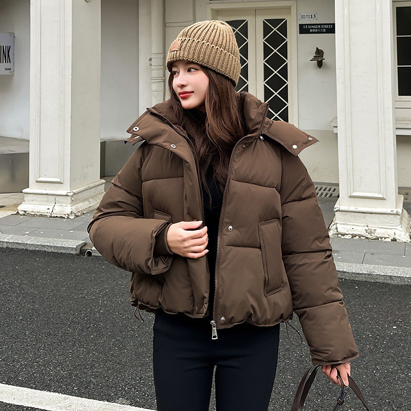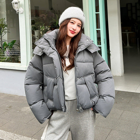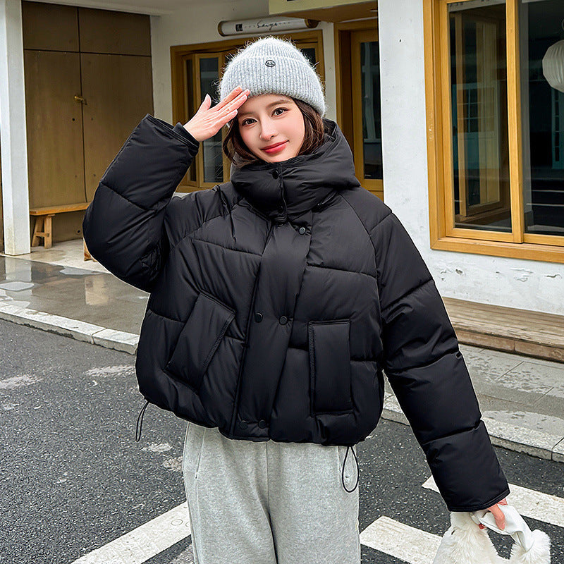 Stay warm and stylish this winter with our Women’s Short Hooded Cotton Down Jacket! ❄️🧥 Perfect for Nepal’s chilly days, this European and American-inspired coat combines thickened warmth with a loose, comfortable fit. Its hooded design keeps you cozy, while the trendy short cut adds a modern, fashionable touch.