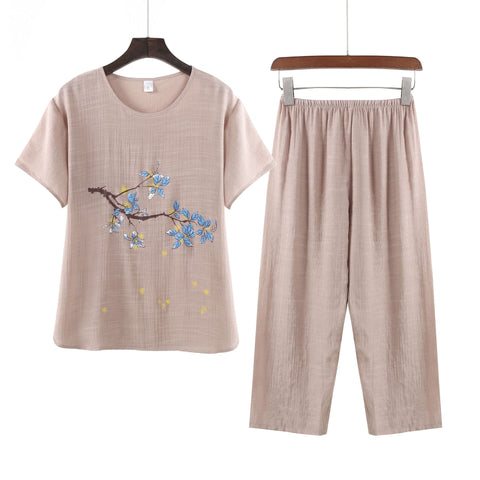 Women’s Summer Cotton & Linen Two-Piece Set – Stylish & Comfy