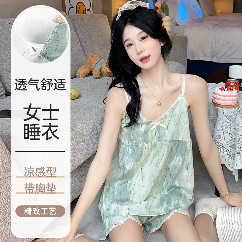 π Slip into summer comfort with this ice silk pajama set featuring a chic V-neck camisole with a built-in chest pad and matching shorts. Light, soft, and breathable β itβs perfect for lazy afternoons and dreamy nights βοΈπ.