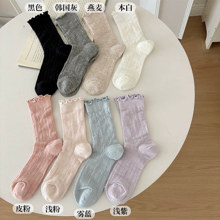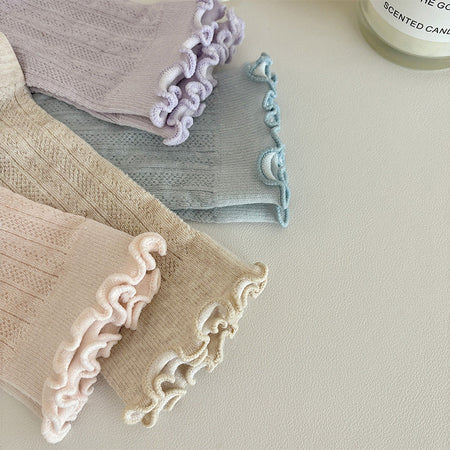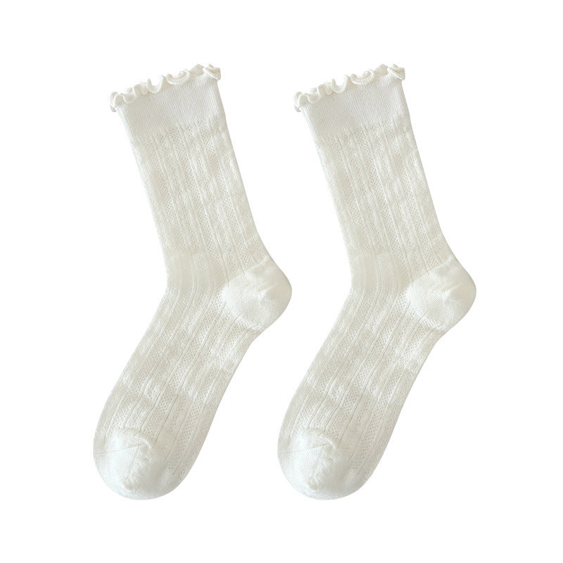 🍂 Cute meets cozy with these Japanese Mesh Wood Ear Socks! With soft cotton mesh and a ruffled wood ear top, they’re breathable enough for summer yet warm enough for autumn strolls.