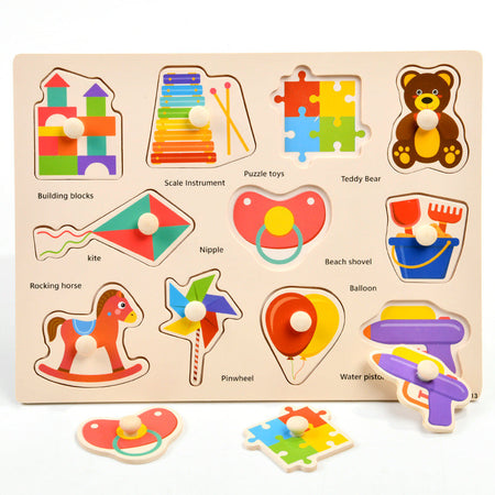 This multi-functional hand-held jigsaw puzzle features colorful alphabets, numbers, fruits, vegetables, and animals, helping toddlers and young kids build essential knowledge in a fun, interactive way ππ€π¦