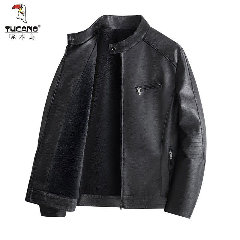 Woodpecker PU Leather Men's Retro Winter Motorcycle Jacket