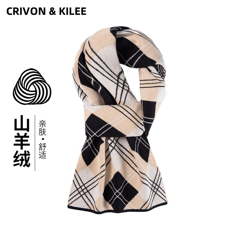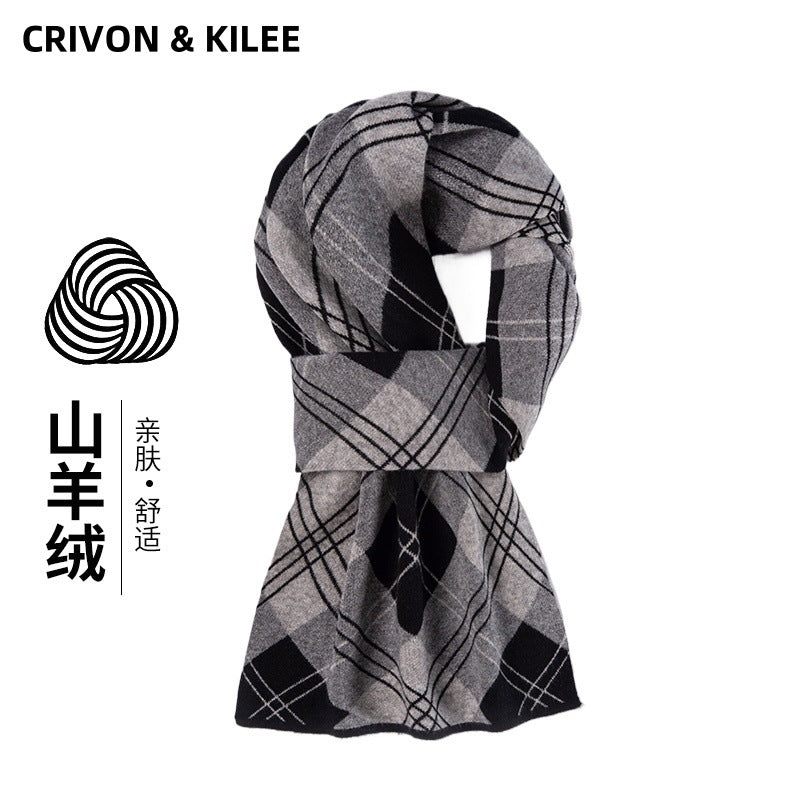 Men’s Plaid Wool Cashmere Scarf Autumn Winter 2025