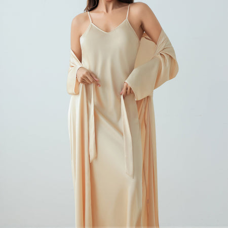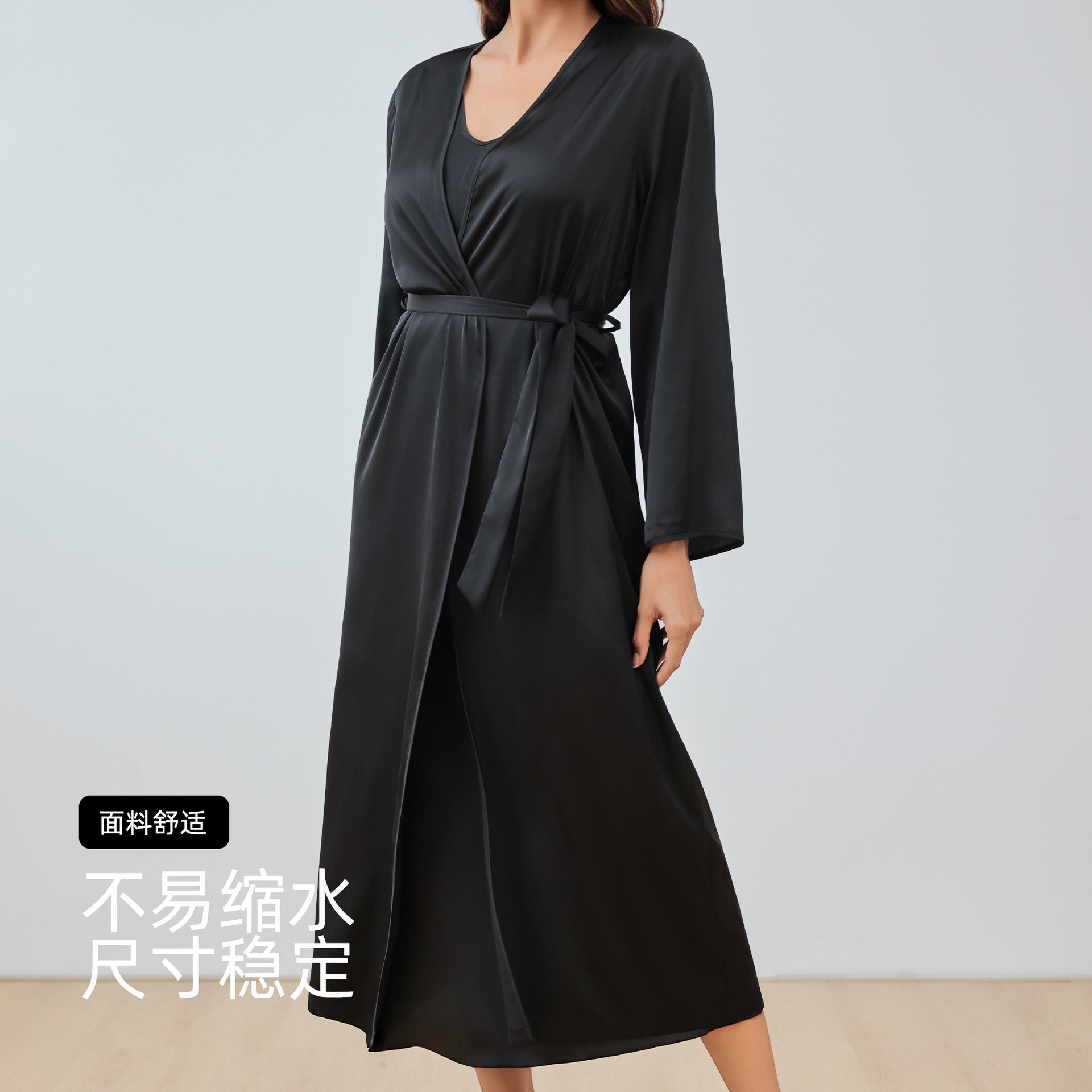 💖 Relax in style with the Yaoting 7015 cross-border pajama set, featuring a fashionable long satin robe paired with a loose suspender slip dress. Designed for women who love luxury and comfort, this set is perfect for home wear, lounging, or as a chic bathrobe set.