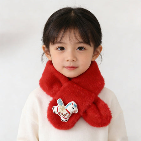 Year Horse Kids Red Plush Cartoon Scarf Korean Style Girl XL