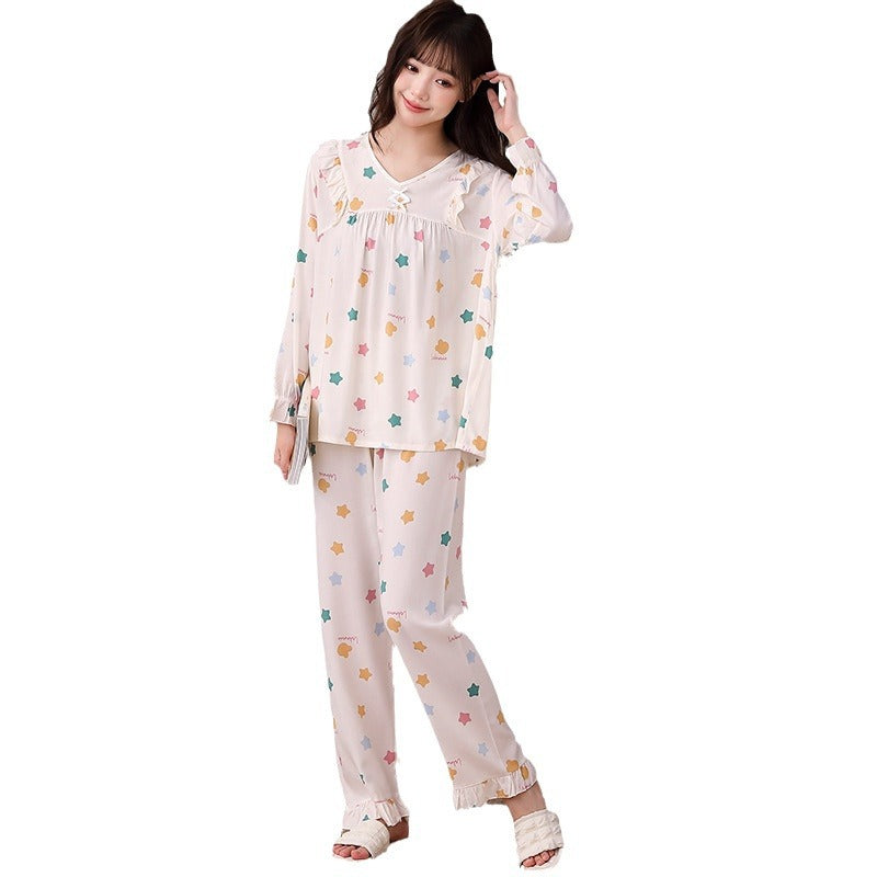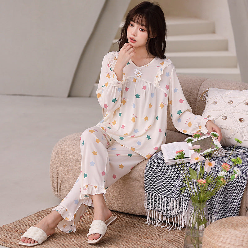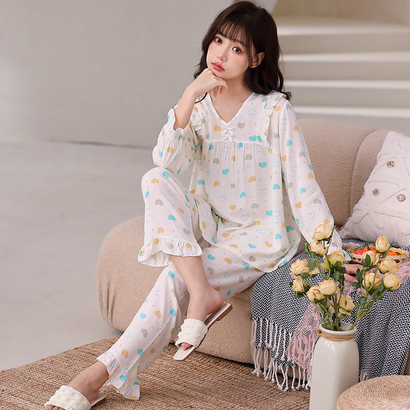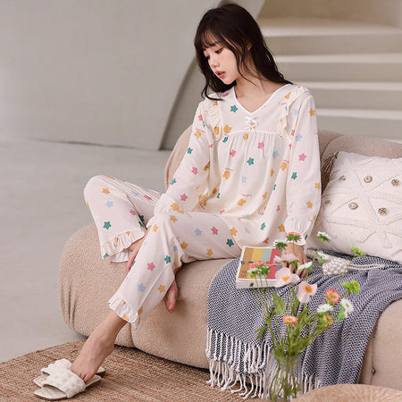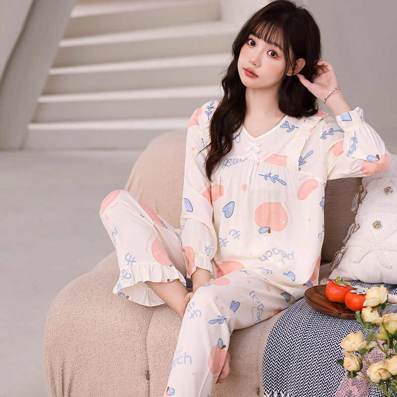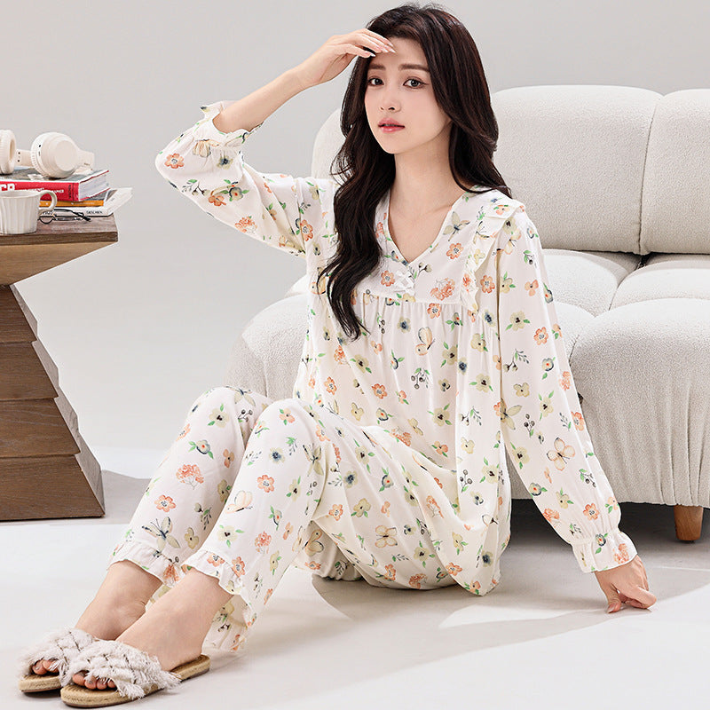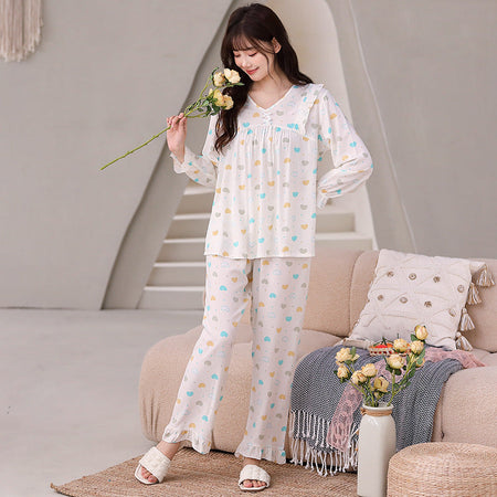 Yi Ni Cotton Silk Pajama Set β V-Neck Long Sleeve Homewear