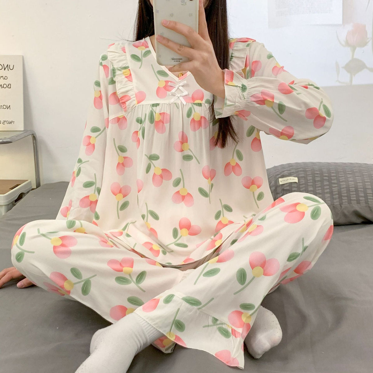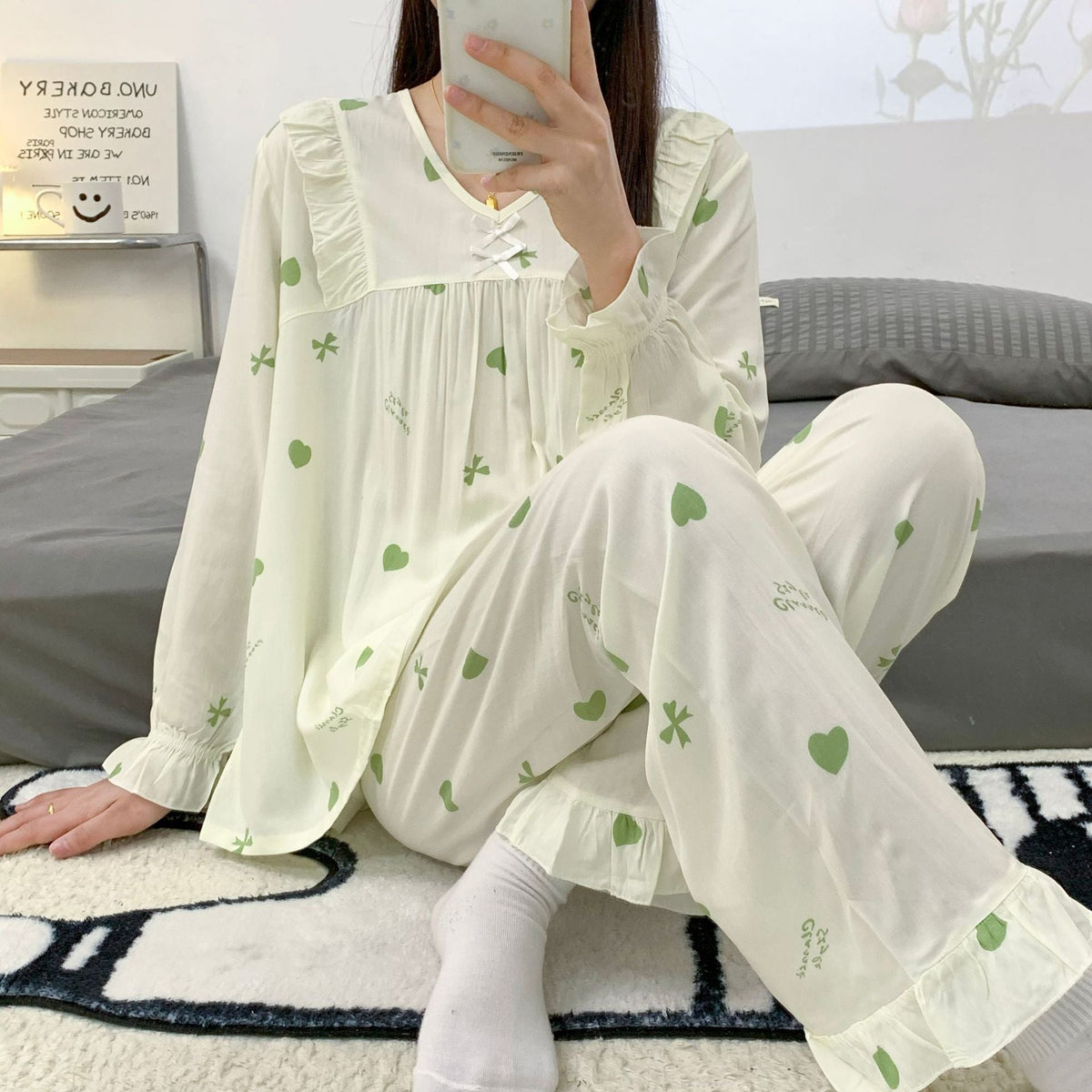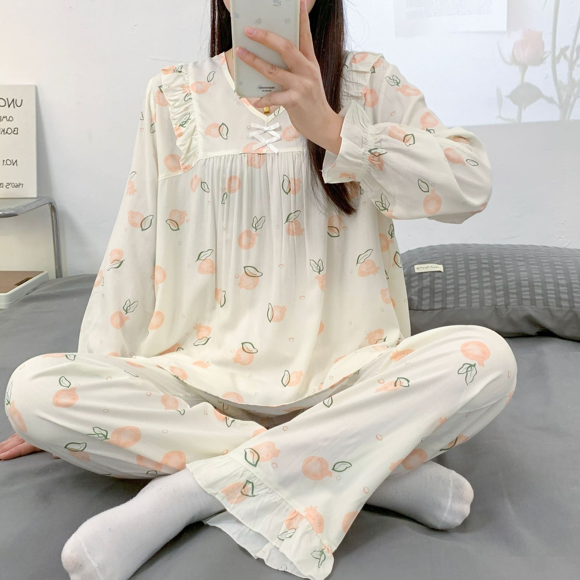Yi Ni Cotton Silk Pajama Set β V-Neck Long Sleeve Homewear