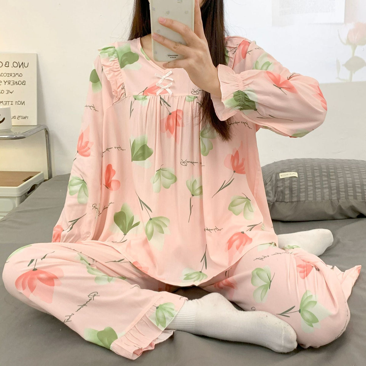 Indulge in the luxury of Yi Ni Cotton Silk Pajama Set πΏπ. Crafted with a perfect blend of cotton and silk, this long-sleeved V-neck suit is designed for ultimate comfort during spring and summer. The soft fabric feels gentle against your skin, making it ideal for a relaxing evening or lounging at home.