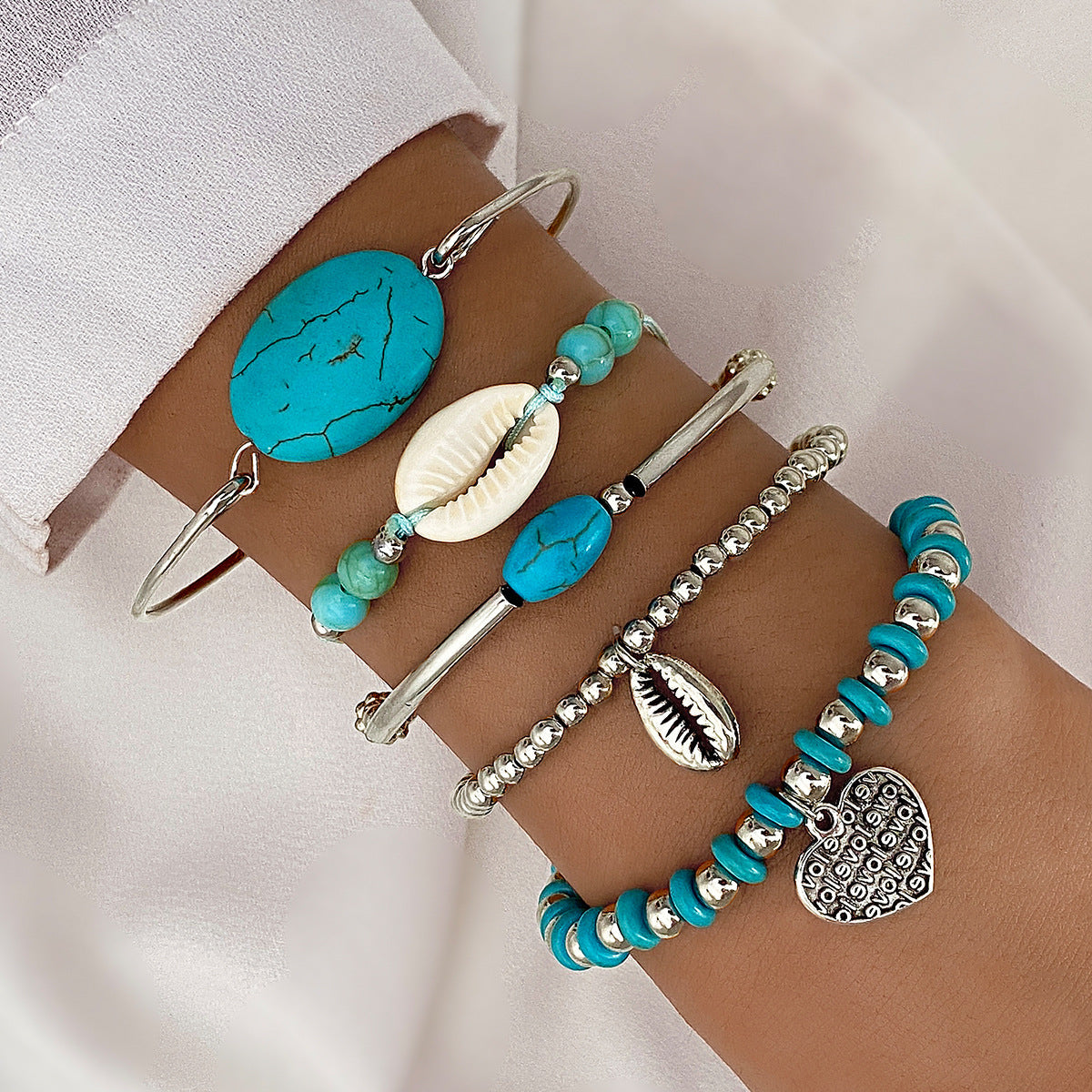 This bracelet set is all about expression. Whether you’re at a summer festival, a vacation by the sea, or styling up a casual outfit, the mix of textures and charms adds instant personality.