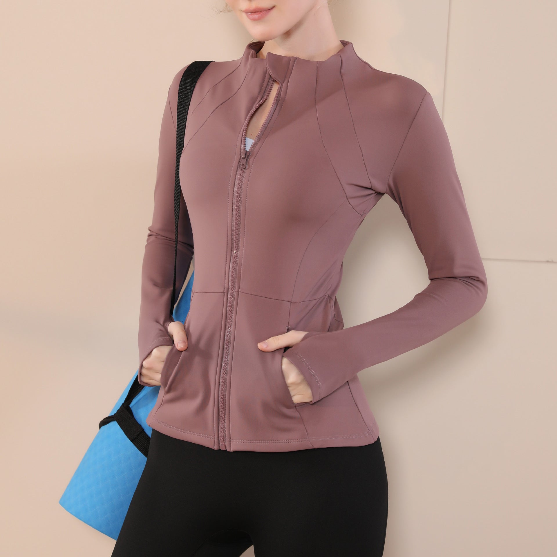 Women’s Slim Yoga Jacket – Stand Collar Zipper Sports Top