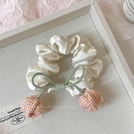 Tulip Satin Bow Hair Loop โ Creamy Cute Ponytail Accessory