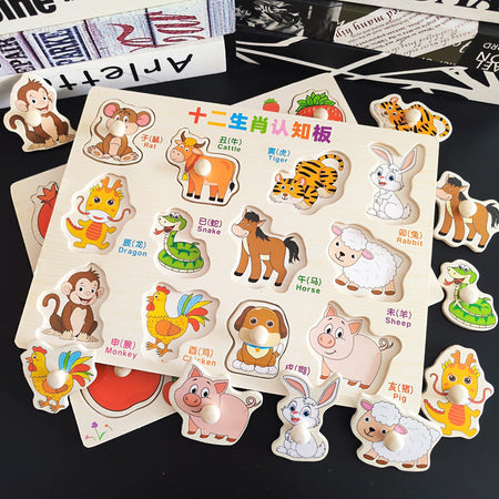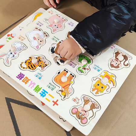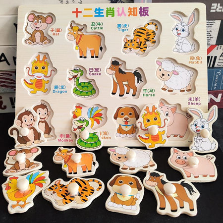 Zodiac Animal Wooden Puzzle Board Toy for 0-3Yrs Kids Smart!