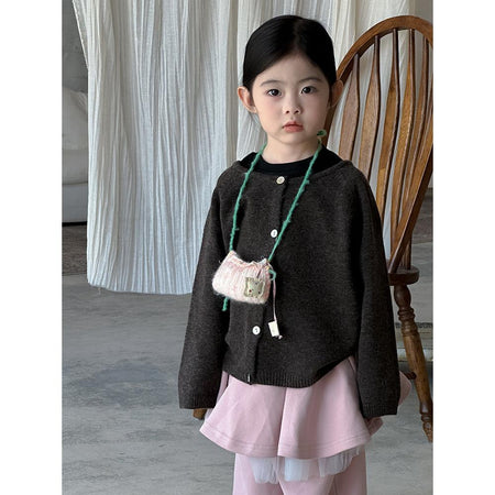 Korean Style Girls’ Knitted Cardigan – Wool Autumn Top